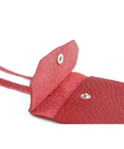 Saszetka została wykonana ręcznie. Delikatne zapięcie chroni przed wysypaniem zawartości, a długa skórzana rączka pozwala nosić saszetkę na ręce bądź przewiązać wokół smyczy na spacerze.